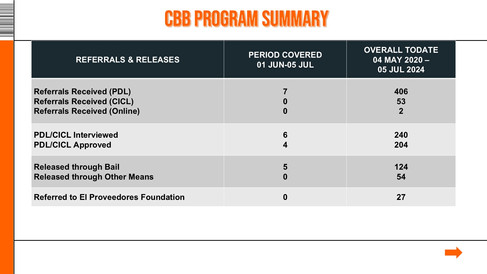 For the month of July our Community Bail Bond Program continued to reach more PDL who deserve to be released from detention. Our Program Field Officers continued with their regular activities that included conducting weekly monitoring/home visits of successfully released participants, providing guidance and updating the steps they are taking towards becoming productive members of their communities.
