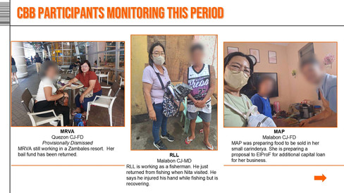 Aside from the weekly monitoring of our released Participants, our Program Field Officers likewise were unfailing in conducting initial home and barangay visits for applicants, coordinating with barangay officials & PAO lawyers, and the processing of bail for CBB Applicants.