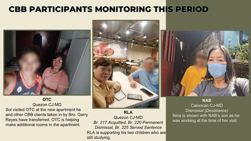 For this period, we were able to successfully release one CBB Participants from detention. All were released through bail. They join the 205 other CBB Participants that have been released, all of whom we are assisting towards community reintegration.