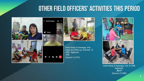 Aside from the weekly monitoring of our released Participants, our Program Field Officers likewise were unfailing in conducting initial home and barangay visits for applicants, coordinating with barangay officials & PAO lawyers, and the processing of bail for CBB Applicants.