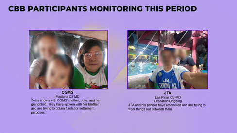 More significantly, we have a total of 82 CBB Participants who have successfully graduated from the CBB Program. We consider participants as having successfully graduated from the Program after their cases have been closed, and at least another six months of monitoring have elapsed. Throughout this period, they must have shown to be responsible members of their community and can lead productive lives.