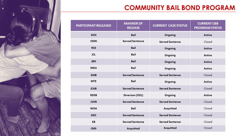 We celebrate a year into our Community Bail Bond Program and we look back with pride to our triumphs and accomplishments as well as take stock of the numerous challenges and learnings we have gleaned for the past twelve months.