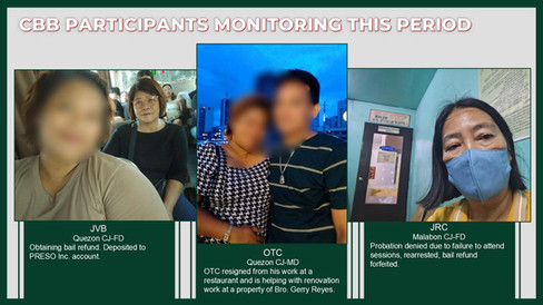 Our Program Field Officers continued with their regular activities that included conducting weekly monitoring/home visits of successfully released participants, providing guidance and updating the steps they are taking towards becoming productive members of their communities.